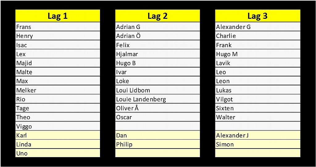 Lag 1 spelar på H12, Lag 2 på H13 och Lag 3 på H14. Planbeteckningarna har varit lite oklara i och med Fotbollens dag, men vi hoppas att allt ska vara iordningställt.